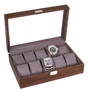 Watch boxes also come in leather. The soft leather cases are created with exceptional stitching designs. With a variety of colors and designs, there is a leather case that matches the uniqueness of your timepiece.